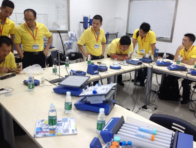 在儀器展示區(qū),IKA技術人員針對不同產(chǎn)品,就類別、原理、功能、技術參數(shù)、維修保養(yǎng)技巧,為我們銷售人員做了詳細解說。并給予現(xiàn)場演示操練時間。待廣州深華銷售人員徹底了解后,連連稱贊。兩家公司關系極其融洽。